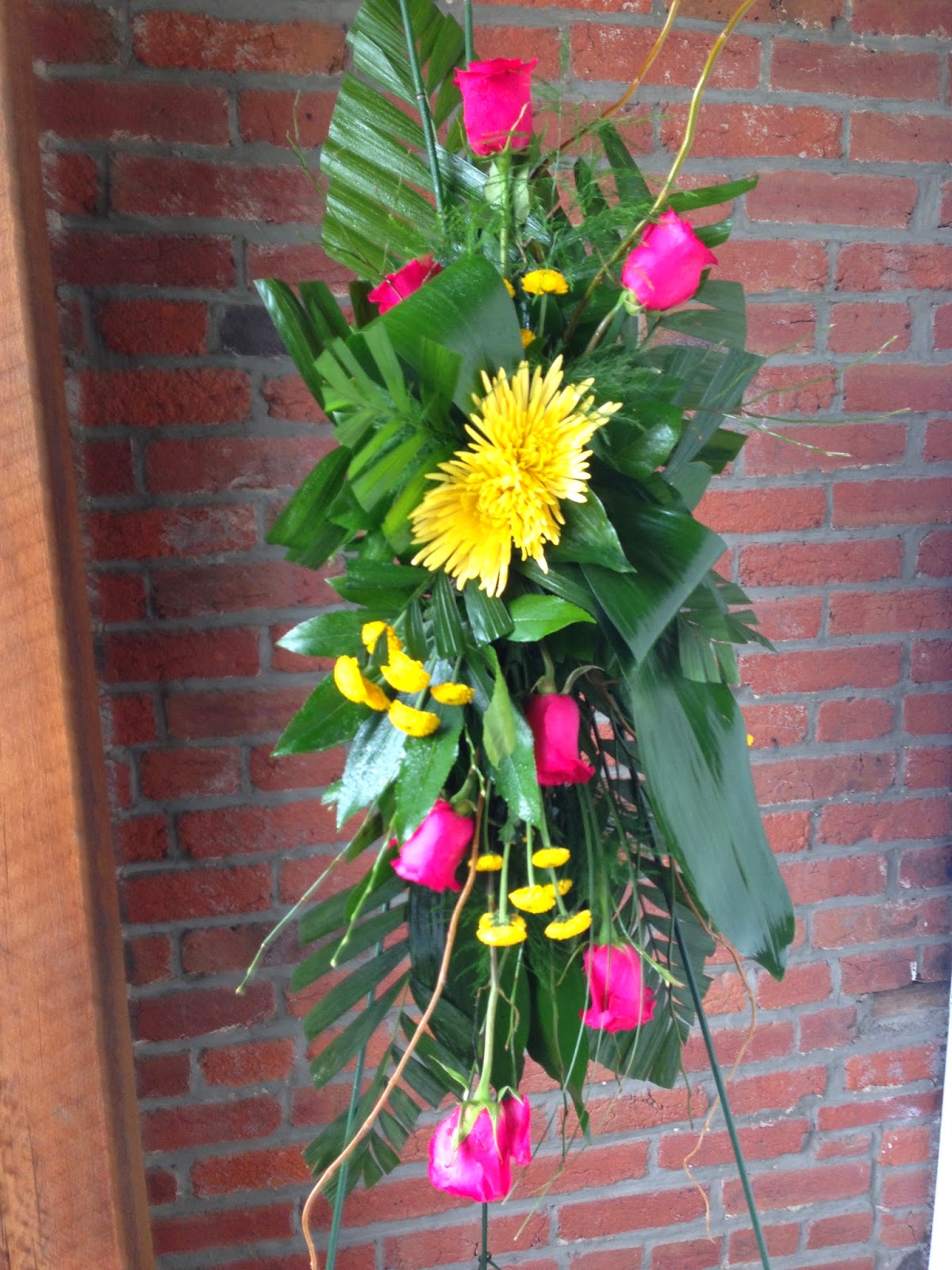 The Students created these designs in the Explore Floral Design Class, Sympathy Tributes Day. This is the first casket piece and stnading easel spray they have done. Well Done!!